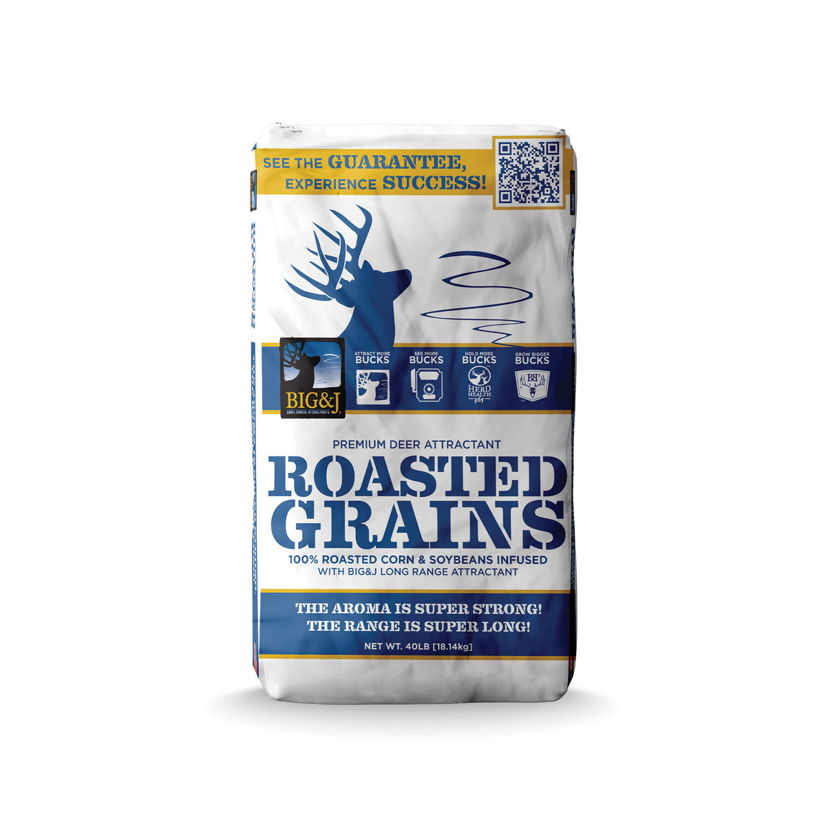 Introducing Roasted Grains - a unique blend crafted from 100% roasted corn, soybeans, and the iconic big&J Long range attractant. Using one of our exclusive binding liquids, we've fused these premium ingredients into a product with an unparalleled aroma and flavor and is feeder friendly!